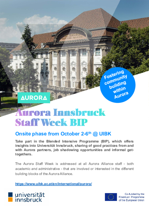 University of Innsbruck zve zaměstnance UP na BIP Staff Week, jehož fyzická část se bude konat od 2. do 6. října 2023.