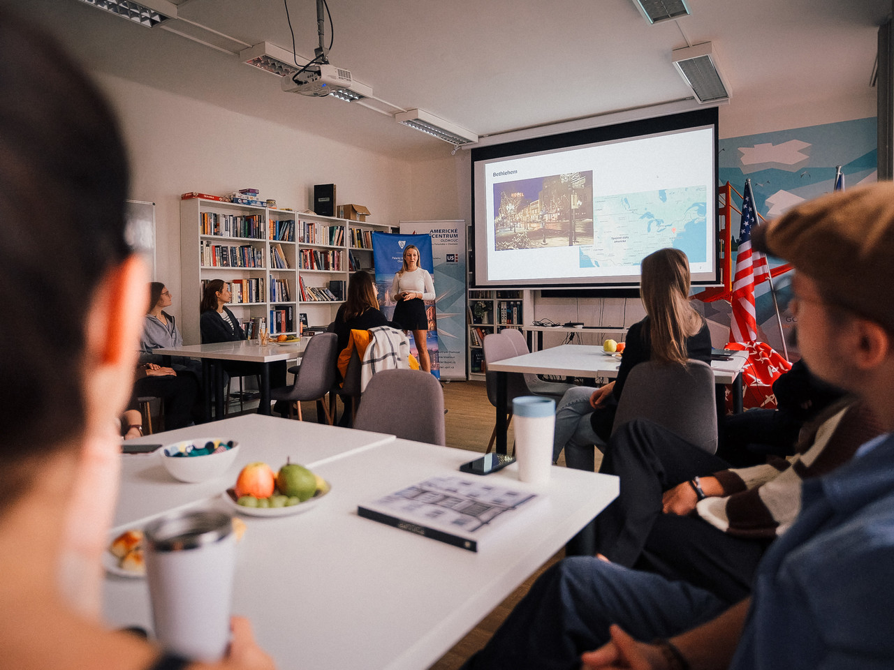 Ve středu 15. října odpoledne jsme otevřeli dveře našeho oddělení a uspořádali přátelské setkání s koordinátory programu Erasmus a také při této příležitosti představili Merrillův program, který nabízí stipendia pro studium na partnerských univerzitách v USA. Publikum zcela okouzlily absolventky Merrillova programu sdílením svých zkušeností se studiem v USA. Výzva pro podávání přihlášek na Merrillův program v akademickém roce 2026/2027 je aktuálně otevřena až do 8. prosince 2025. Momenty ze setkání zachytil fotograf Vojtěch Kmenta.