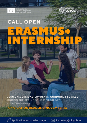 For the Spring semester 2025/26 (January-June 2026), Universidad Loyola is looking for eligible students for Erasmus+ Internship opportunities for our campus in Cordoba and Seville. Internships are compatible with the Erasmus SMP framework, but do not offer financial compensation.