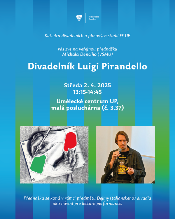 Zveme Vás na veřejnou přednášku Michala Denciho (VŠMU), ve středu 2. 4. v malé posluchárně KDFS. Přednáška se koná v rámci Dejiny (talianského) divadla ako návod pre lecture perfomance.